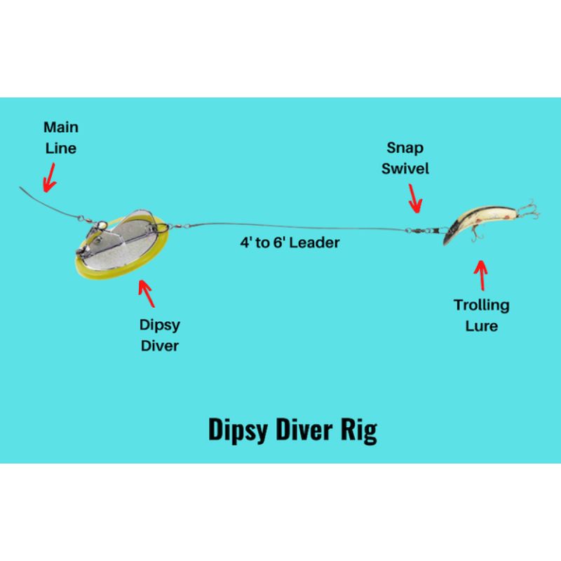 La forma redonda especial y la función multidireccional resultante distinguen al Dipsy Diver de todos los demás buceadores y planeadores. Un cambio a la izquierda o a la derecha, como se indica en la placa base, hará que el buceador siga a babor o estribor, lo que permite pescar grandes cantidades de señuelos desde un solo barco. Cubrirás más agua cuando se desplieguen los Dipsy Divers. El mecanismo de disparo ajustable se puede configurar específicamente para varios tamaños de señuelos y el tamaño de los peces objetivo. Consulte nuestro Informe técnico: Dipsy Diver, The Directional Diver y el Informe técnico n.º 15: Cucharas de arrastre para salmón de agua dulce, lubina rayada y trucha.