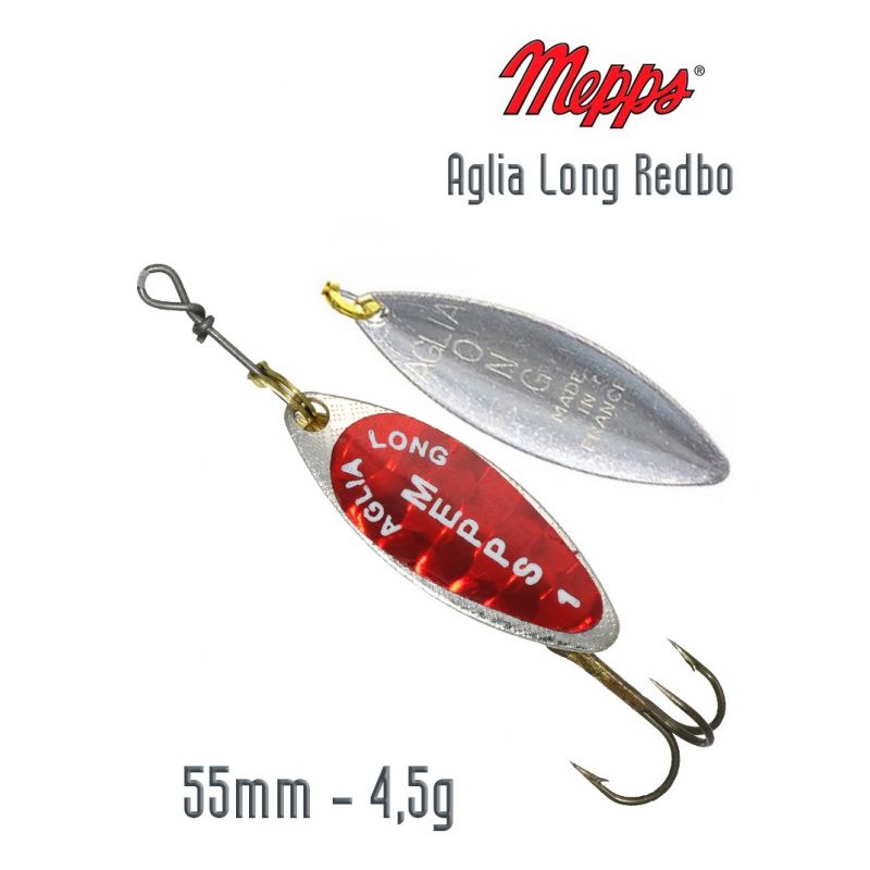 La Cuchara Mepps Aglia Long es la número uno del mundo, con un ángulo de giro de 30 grados y baja resistencia. Cabe destacar que la resistencia varía ligeramente según la velocidad de recuperación. Esta característica es la clave de su récord de capturas. Gracias a su acción consistente