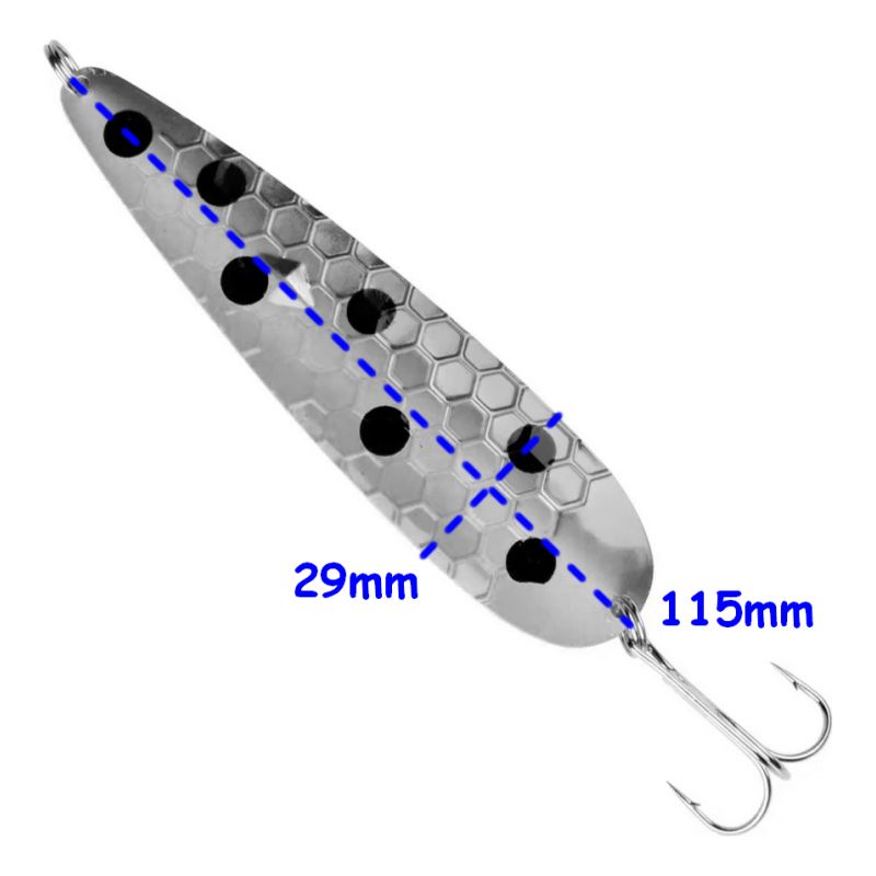 El modelo Diamond de la firma Waterdog, con forma ovalada, alargada, del tipo Diamante es una cuchara para pesca embarcada en modalidad trolling de profundidad con línea de plomo, ideal para grandes capturas, en zonas profundas de los lagos del Sur. Presenta gran variedad de colores, en su único modelo "Diamante", en su extremo inferior presenta un gancho triple. Afilado químico.