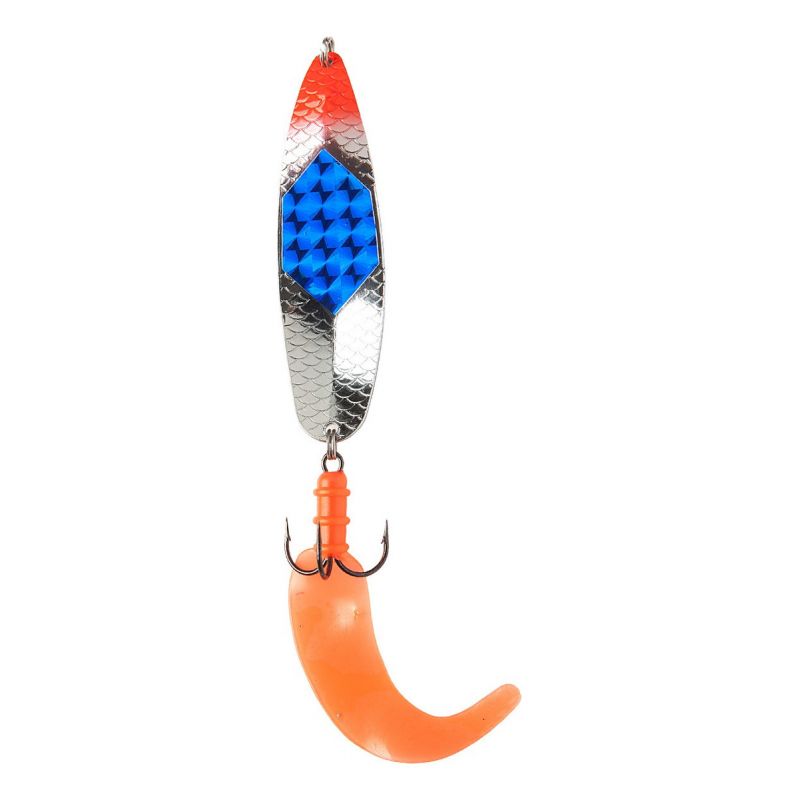 Tiene la particularidad de presentar un centro Azul brillante en el cuerpo de la cuchara lo cual es ideal para dias soleados en aguas claras, el efecto reflejo es muy llamativo.