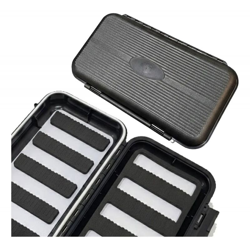 Caja de pesca técnica diseñada específicamente para el almacenamiento y protección de moscas. Su estructura robusta y sistema de sellado garantizan durabilidad en cualquier entorno de pesca.