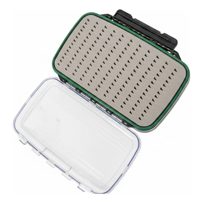 Caja de alta resistencia diseñada para pesca con mosca. Fabricada en plástico reforzado transparente que permite ver el contenido de ambos lados sin necesidad de abrirla. Es 100% estanca gracias a su sello de goma, protegiendo tus moscas de la humedad y el agua.
