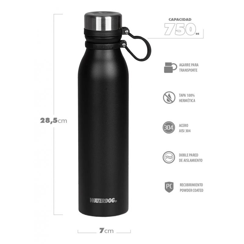 Botella termica Waterdog BUHO 750 negro
