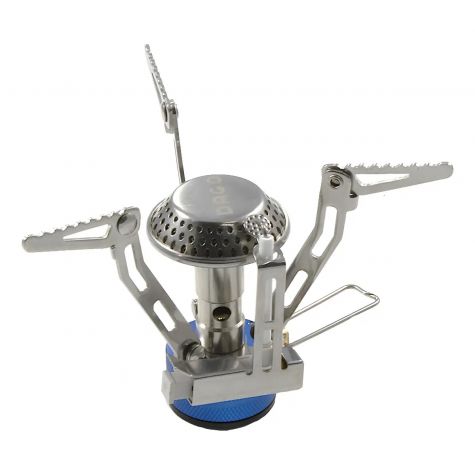 Diseño Micro, totalmente plegable, especial para transportar dentro de bolsos y mochilas de camping. De uso sencillo y muy liviano. Fabricado en aleación de aluminio de alta resistencia y acero inoxidable.