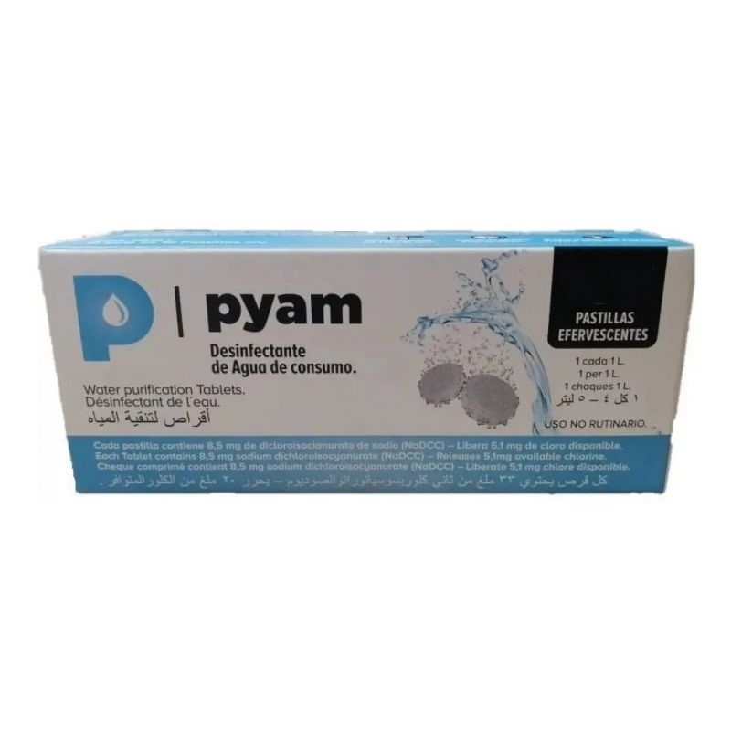 Los comprimidos y granulados PYAM, purifican biológicamente el agua, previniendo enfermedades de origen hídrico (tales como cólera, disenterías y otras) mediante la liberación de ácido hipocloroso en contacto con el agua. Es totalmente biodegradable, seguro para el medio ambiente e inocuo para los seres humanos y animales. Su fácil aplicación y dosificación lo hacen ideal para diversos usos, en el hogar y en campamentos u otras actividades al aire libre, ya que se trata de un proceso muy simple, al alcance de cualquier usuario no experimentado. Son, además, una excelente opción para brindar agua segura a personas afectadas por desastres naturales, o catástrofes humanitarias.