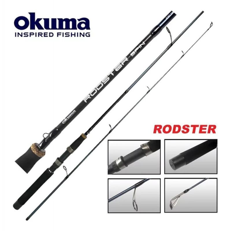 La caña Okuma Rodster presenta la tecnología Ultimate Flex Reinforced (UFR) con punta de la caña que es más liviana que las varillas UFR clásicas, junto con una sólida construcción de composite y blank de grafito, mango EVA completo con anillo de goma de corcho.