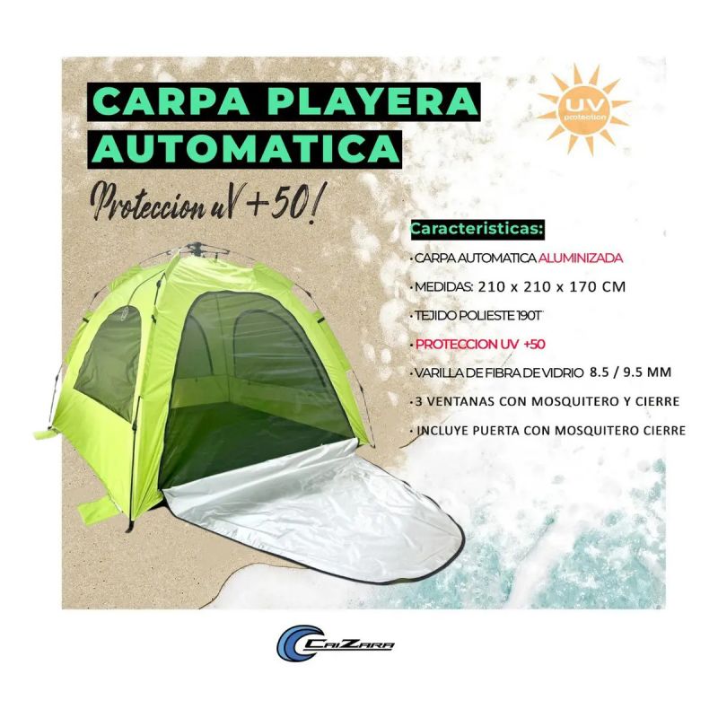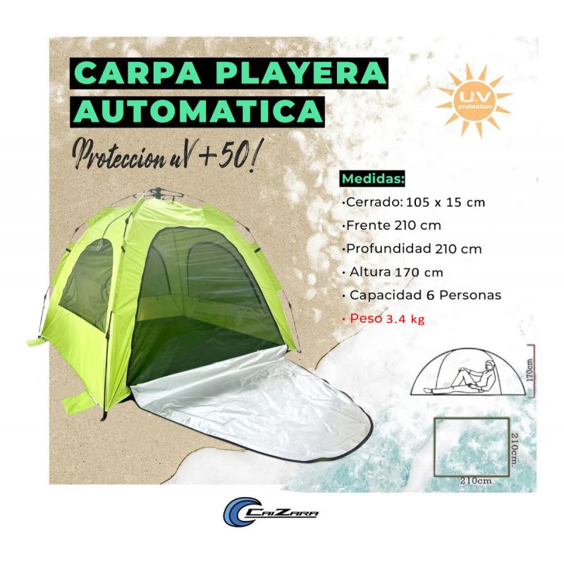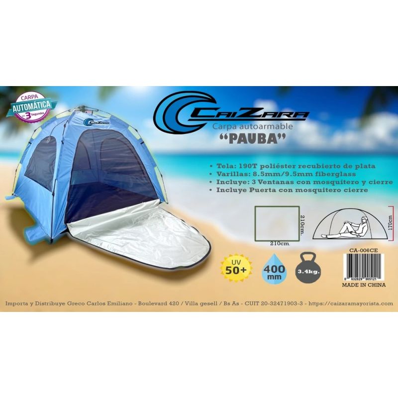 ¡Olvidate de perder tiempo armando varillas! La carpa Pauba está diseñada para que empieces a disfrutar de tu día de camping o playa en cuestión de segundos. Gracias a su sistema autoarmable y su excelente ventilación, es la compañera ideal para escapadas de fin de semana, pesca o días de verano.