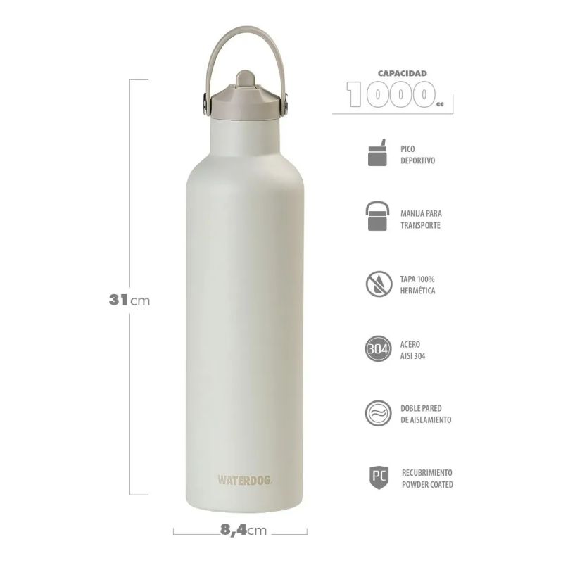 Mantente hidratado y energizado durante todo el día con la botella térmica Waterdog Hydro. Su gran capacidad de 1000ml te asegura que siempre tendrás agua fresca a mano. Ideal para llevar al gimnasio, la oficina o tus aventuras al aire libre. ¡Disfruta de tu bebida favorita a la temperatura perfecta en cualquier momento y lugar!