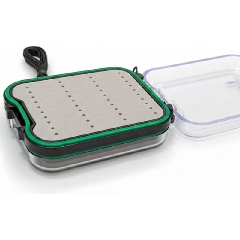 Caja porta moscas profesional de la marca Matzuno, diseñada para pescadores de Fly Cast que buscan proteccion y organizacion superior. Este modelo esta fabricado en plastico reforzado transparente, lo que permite ver el contenido sin abrir la caja. Cuenta con un sistema doble estanco que asegura la impermeabilidad total, manteniendo tus moscas secas en cualquier condicion.
