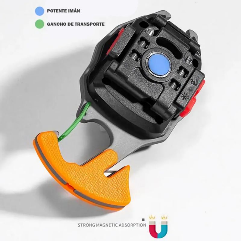 Construida en ABS + aluminio, combina resistencia y ligereza con solo 69 g de peso. Su tamaño