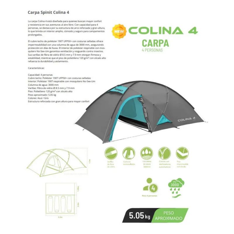 Carpa Spinit COLINA 4 azul gris