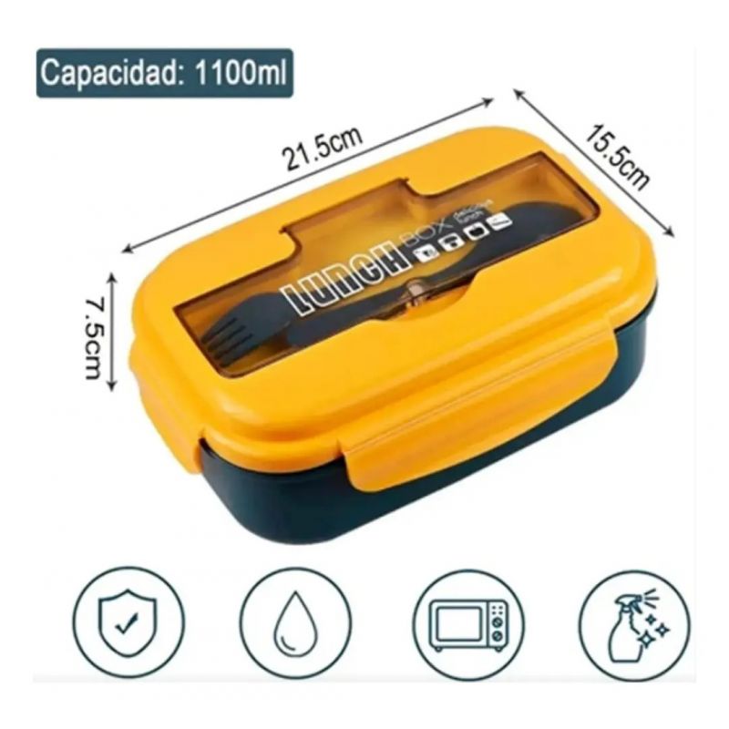 El Lunch box incluye 2 utensilios, 1 Tenedor y 1 Cuchara 100% Ecológicos y reutilizables.