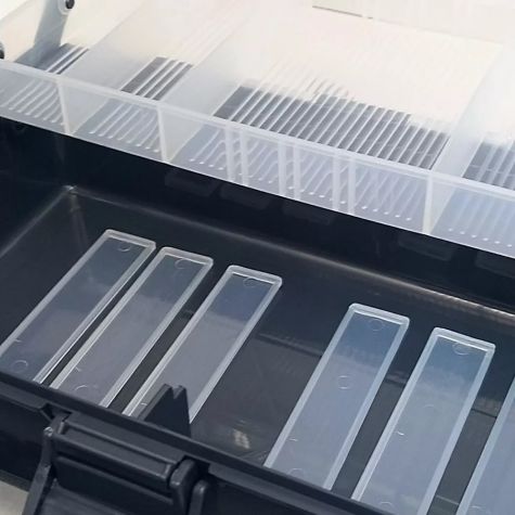 La caja viene con dos bandejas rebatibles, cada una con 7 divisiones, sumando un total de 14 divisiones. Estas bandejas son ideales para organizar tus anzuelos, señuelos y otros pequeños accesorios de pesca. Además, las divisiones son móviles, lo que te permite personalizar el espacio de almacenamiento según tus necesidades.