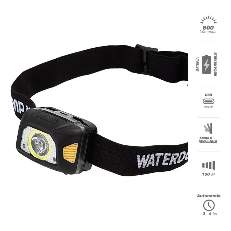 Linterna frontal Waterdog 600 lumens WOL9003