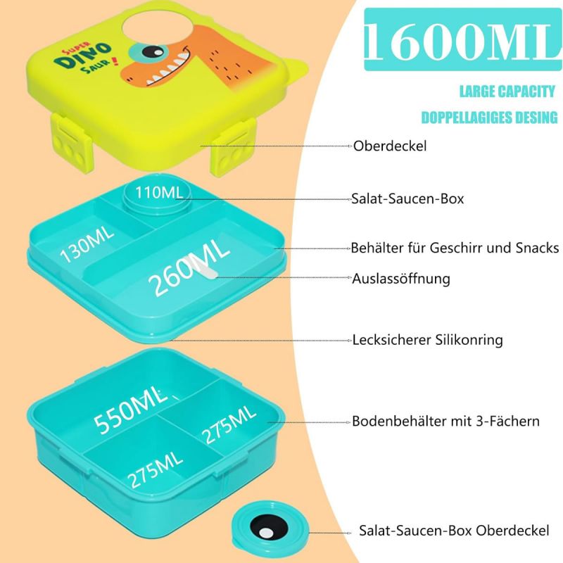 El recipiente es reutilizable 100% ecológico, es libre de cualquier tóxico y está libre de BPA. Puedes asegurarte que tus niños comerán saludable y sus alimentos siempre estarán en buen estado.