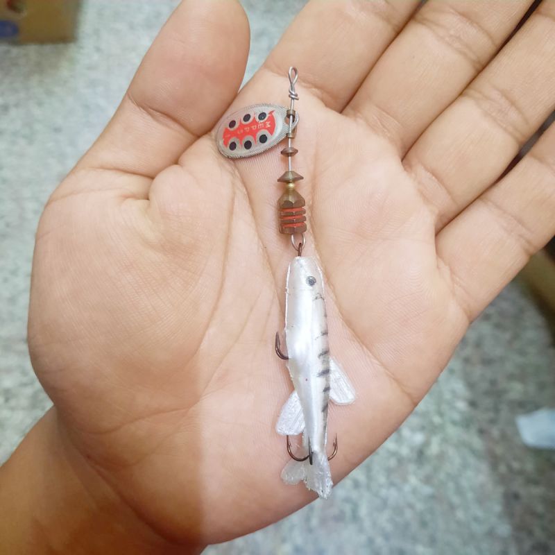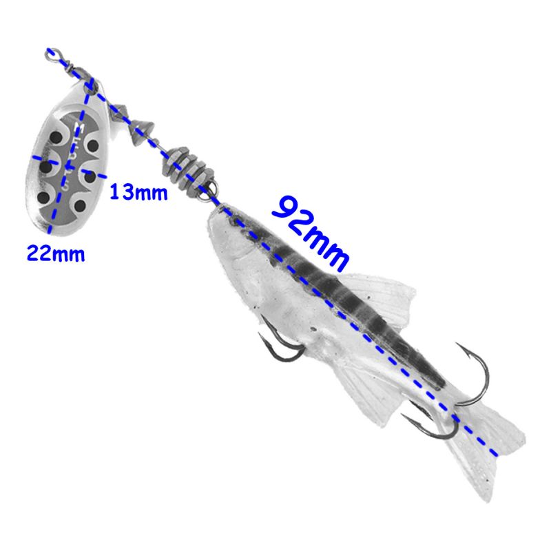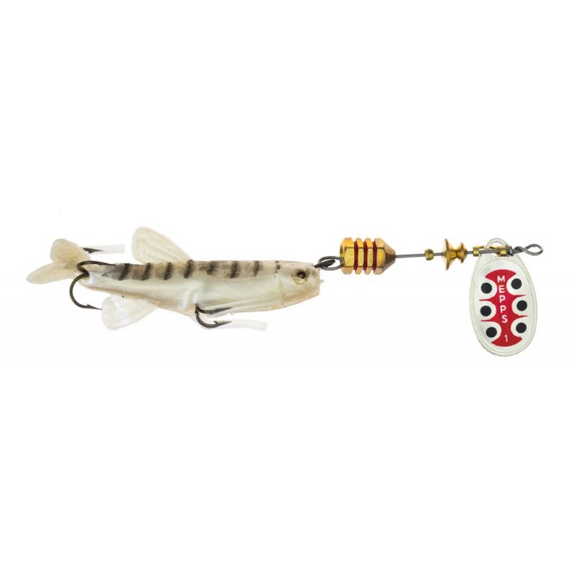 Cucharita giratoria #1 con pescadito de goma Mepps para