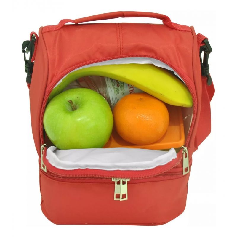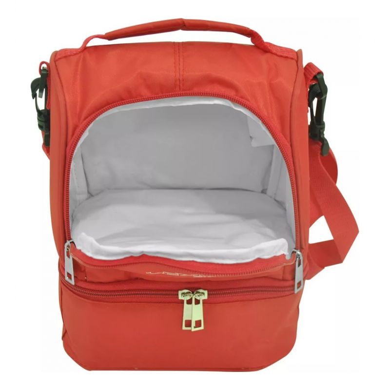 Este bolso mantiene tus alimentos y bebidas frescos. El interior posee una capacidad de 7.5 Lts. tiene aislamiento de espuma celular de alta calidad y un revestimiento duradero y fácil de limpiar. Todos los materiales son 100% libres de PVC. El asa es cómoda de llevar y su cierre facilita el acceso a todos los alimentos del interior. Posee una correa regulable y dos compartimentos para poder dividir tus alimentos. Sabemos que te encantará!