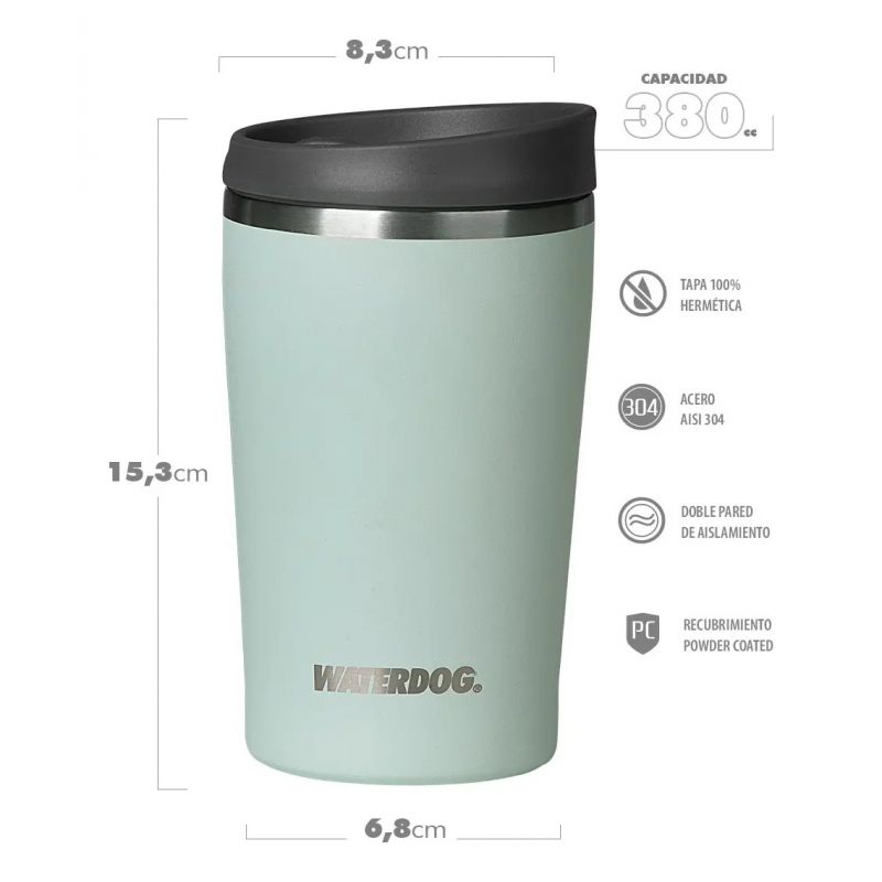Vaso Waterdog American Doble Pared 380 Cc Verde Paraiso Acero Aisi 304