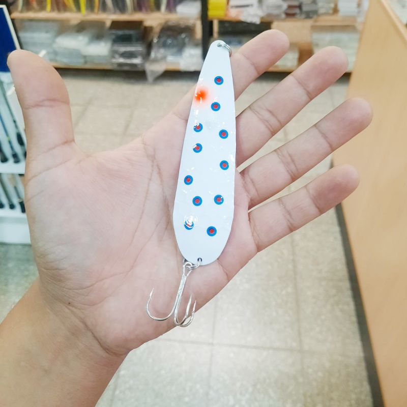 El modelo Diamond de la firma Waterdog, con forma ovalada, alargada, del tipo Diamante es una cuchara para pesca embarcada en modalidad trolling de profundidad con línea de plomo, ideal para grandes capturas, en zonas profundas de los lagos del Sur. Presenta gran variedad de colores, en su único modelo "Diamante", en su extremo inferior presenta un gancho triple. Afilado químico.