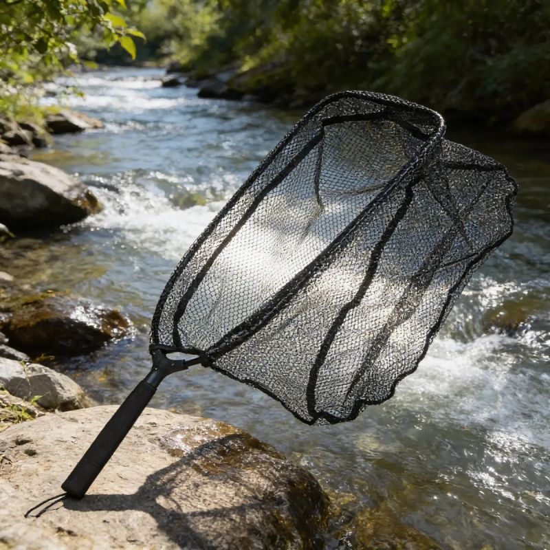 Red de PVC Engomado (Anti-enganche): Olvídate de perder tiempo desenredando anzuelos. La red con recubrimiento de goma evita que las puntas se claven en las fibras y, lo más importante, protege la capa protectora (mucosa) del pez, facilitando una pesca con devolución responsable.