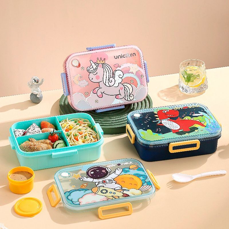 Tapers tupper Lunchera Lunch Box Hermético con 3 Divisiones + Salsero y Cuchara 22,6 x 16,8 x 6,5 Cm Dinosaurio