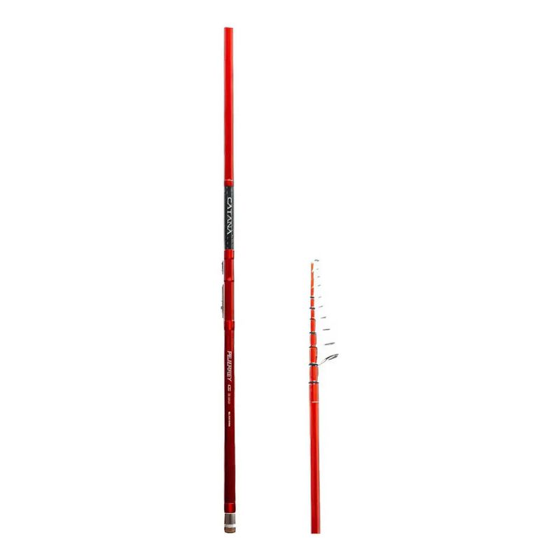 Construida sobre un blank de carbono de alto módulo, se presenta en dos largos diferentes. 4,20 metros, ideal para la pesca en Lagunas y 4,50 metros, para pesca a largas distancias sin perder potencia de clavada. Terminada con un tip de carbono súper sensible se dividen ambas en 5 secciones, y 10 pasa hilos más puntero. Incluye porta reel a cremallera, protector de pasa hilos y funda de transporte.