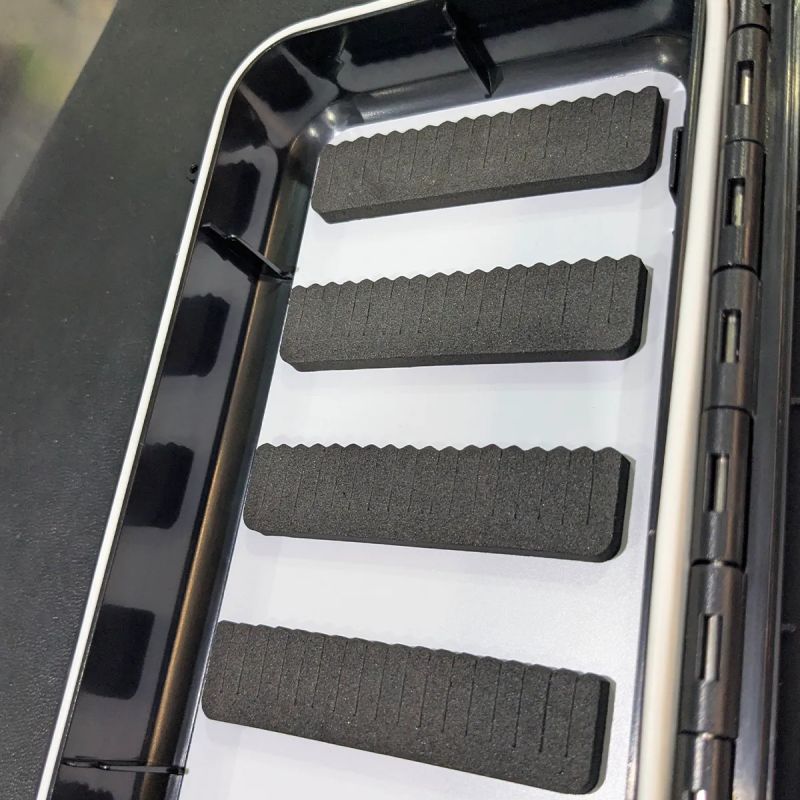 Caja de pesca técnica diseñada específicamente para el almacenamiento y protección de moscas. Su estructura robusta y sistema de sellado garantizan durabilidad en cualquier entorno de pesca.