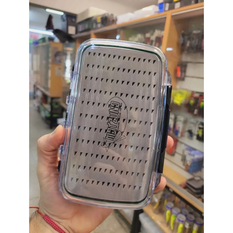Caja de alta resistencia diseñada para pesca con mosca. Fabricada en plástico reforzado transparente que permite ver el contenido de ambos lados sin necesidad de abrirla. Es 100% estanca gracias a su sello de goma, protegiendo tus moscas de la humedad y el agua.
